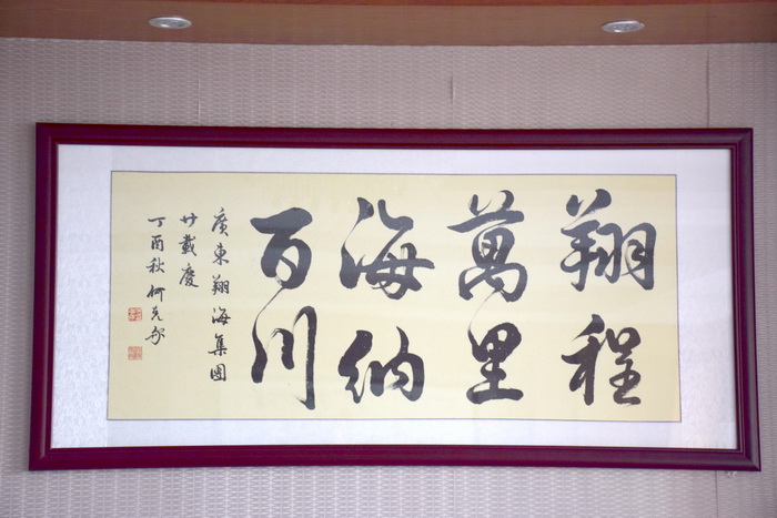 “翔程万里,海纳百川”,佛山市著名书法家亲自提笔,祝贺广东彩神官网「中国」有限公司集团20周年庆典。