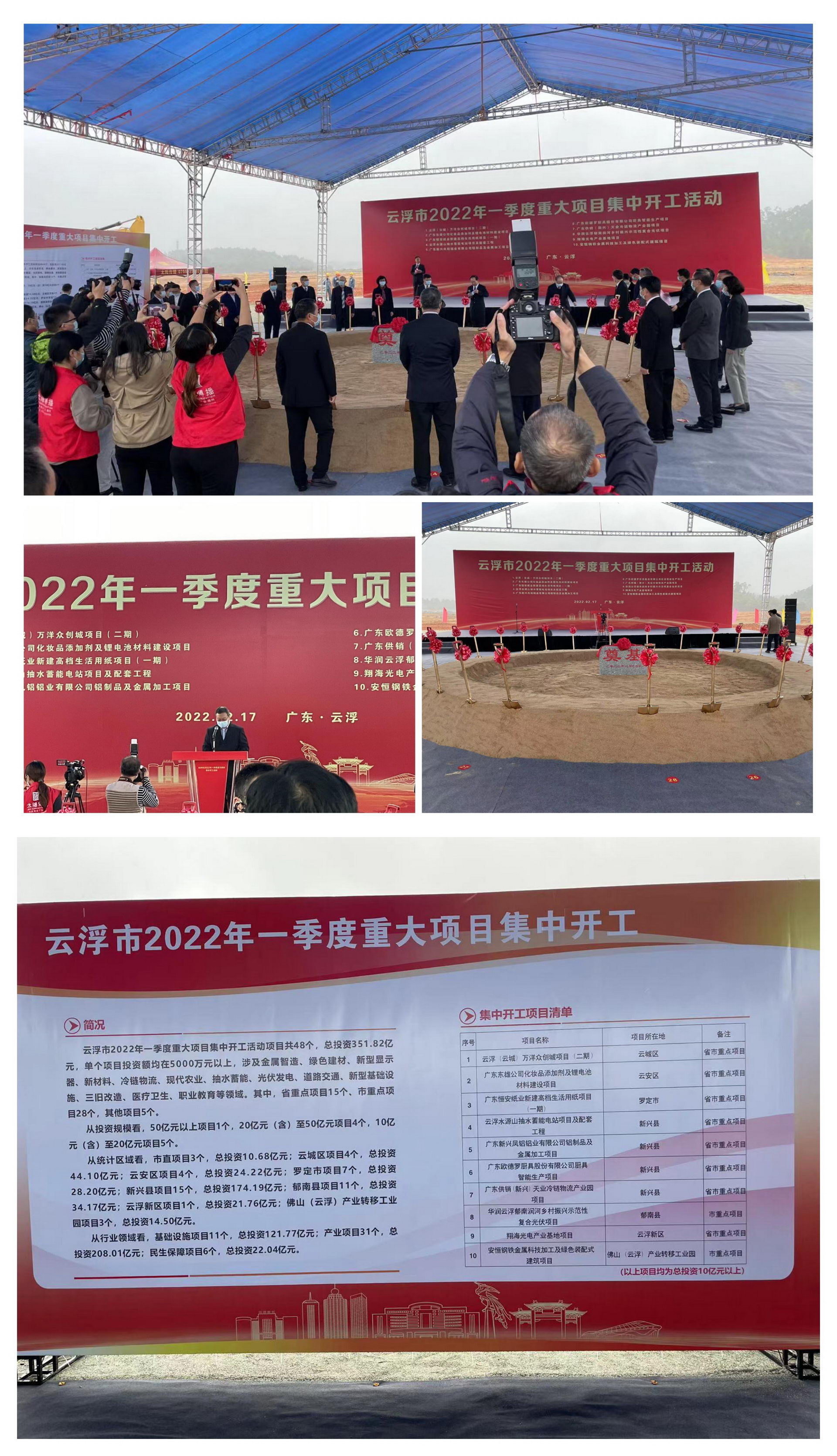 2月17日,云浮市政府举行2022年一季度重大项目集中开工活动,彩神官网「中国」有限公司光电作为代表企业之一,与省、市委市政府领导及多家项目代表共同出席了奠基仪式。